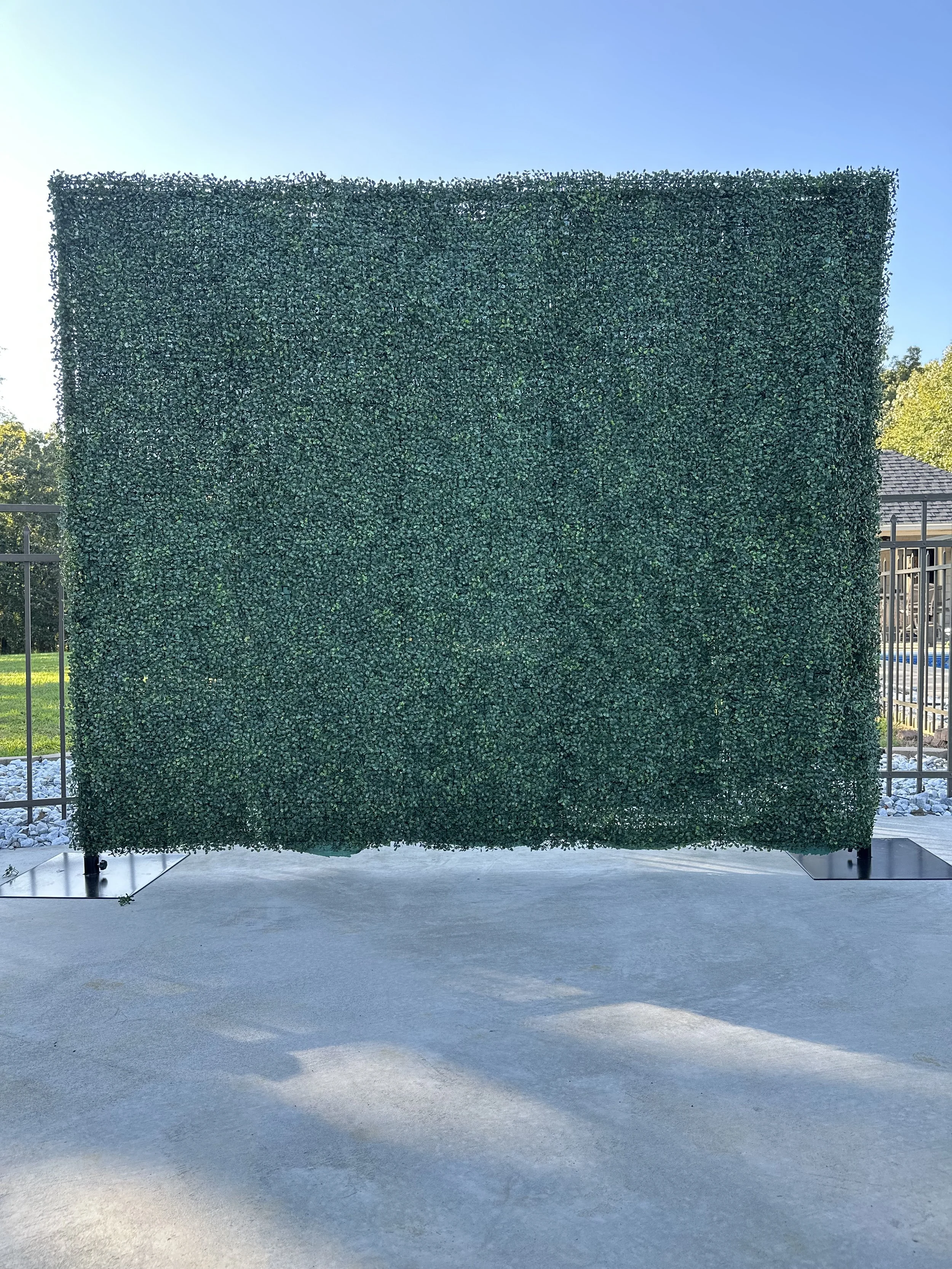 One of our most popular rentals - the classic hedge wall. The max size is 8 feet tall and 10 feet wide. This can be made smaller to fit any area!